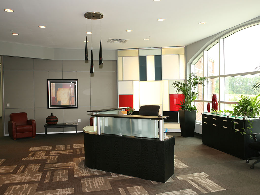 Located in Premier Center One in High Point, this 21,248 square foot Class A office upfit included porcelain tile, Dirtt Wall System, Walltalkers tac-walls and pendant lighting.