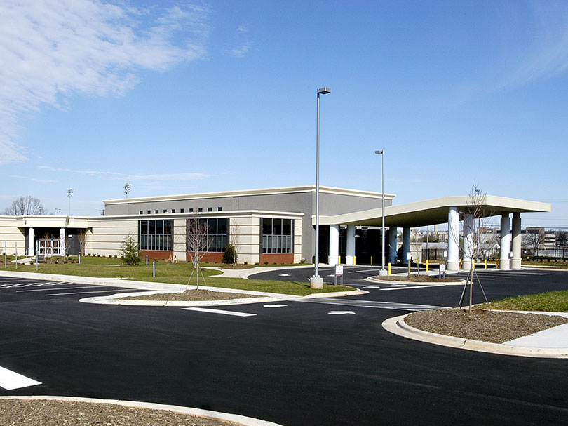 The building consists of a structural steel frame with metal stud exterior walls clad with alternating sections of brick and metal panels and a TPO roof. The building incorporates many sustainable systems including a solar panel array on the roof and LED lighting with motion sensors and smart technology to help reduce electrical costs.