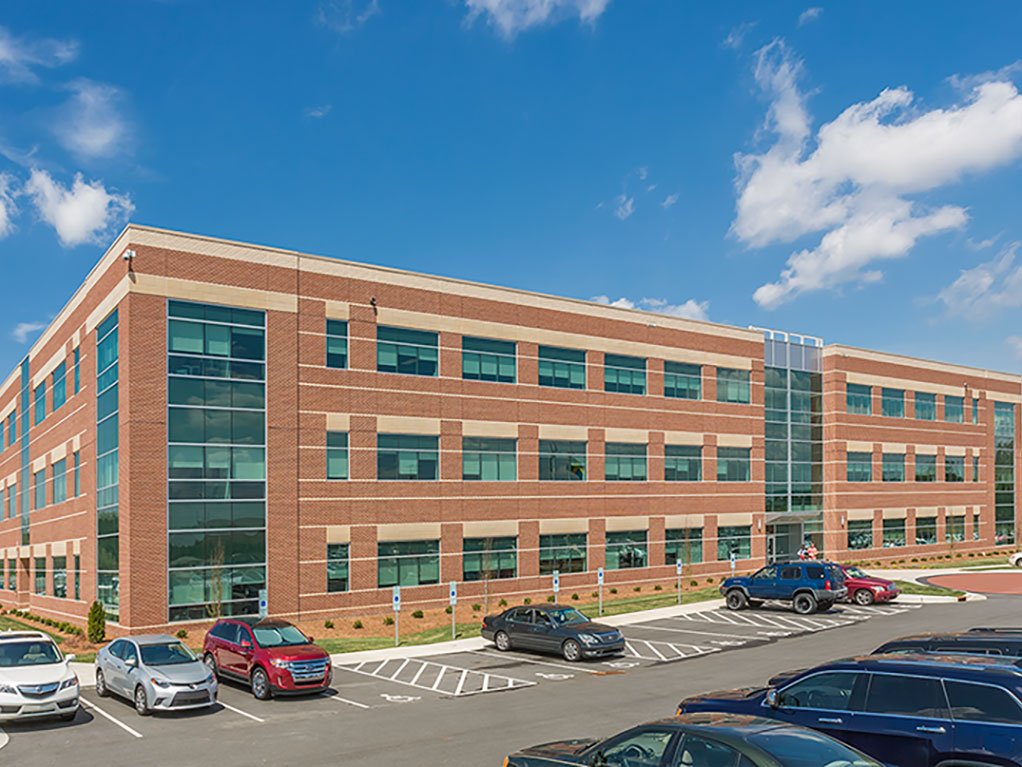 This 70,484 square foot, four-story, single tenant office building is situated in Kimel Park, Winston-Salem, NC. The facility includes a standing seam metal facade system with a two- story open atrium and marble inlay floors.