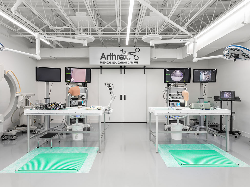 The Arthrex Piedmont+ Medical Education Campus provides a place for local surgeons to practice new procedures and products that will help them better treat their patients. The renovation of existing space included the creation of an experimental lab, classroom, offices, conference room, and open lounge with a golf simulator. A retractable wall system was installed to provide the flexibility to separate both the lab and the classroom from the remaining office space.